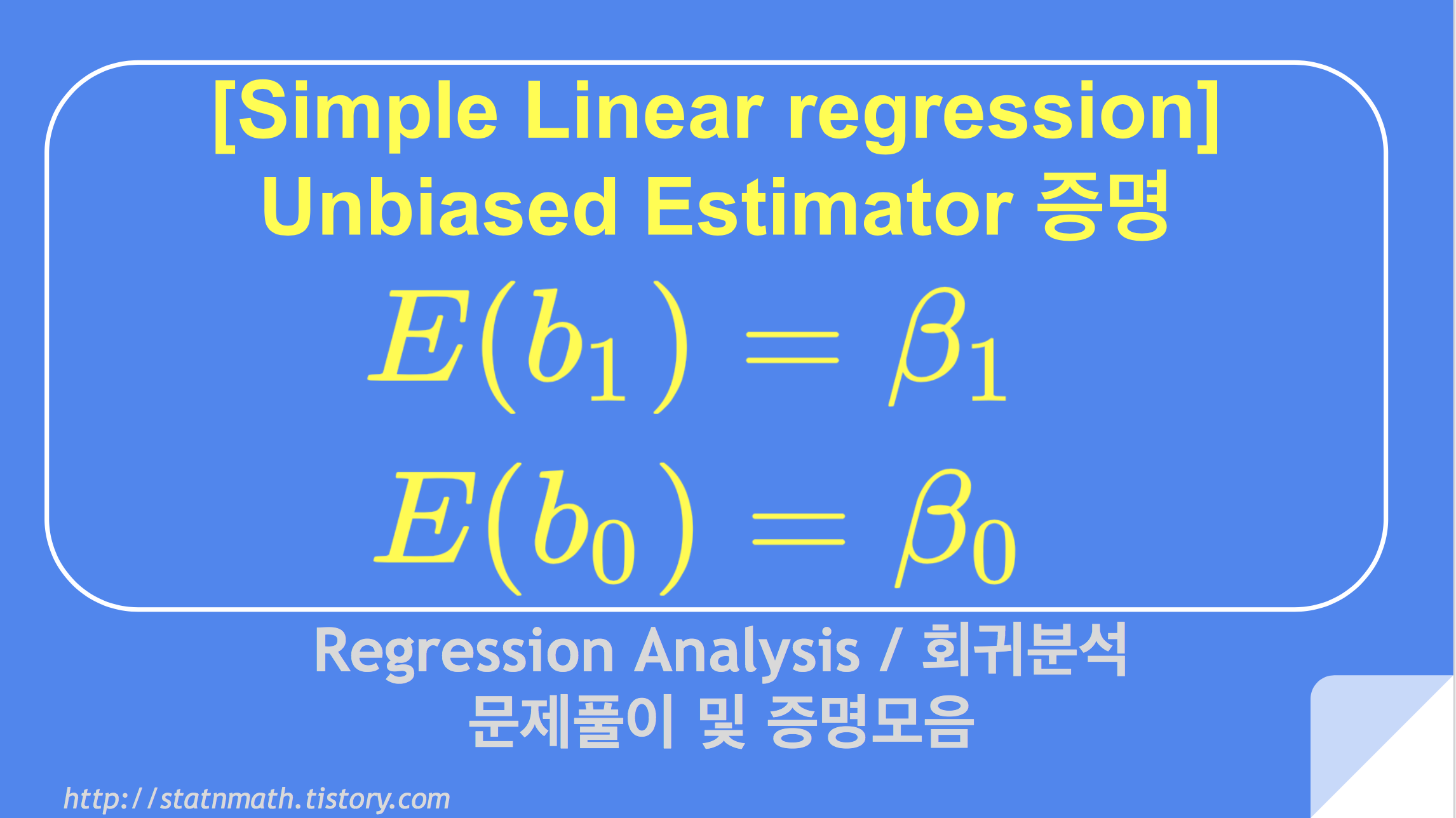 | [회귀분석] MLE 로 b1, b0, S^2 추정값 증명 (0) | 2019.07.26 |