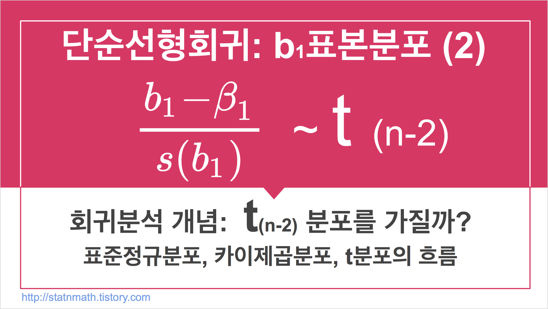 그런데 b1을 정규화한 값은 왜 t의 분포를 갖게 되는 걸까요? 우리는 분산을 모르기때문에 이 값 역시 추정해야해서, t의 분포를 갖는다고 간략하게 설명할 수 있지만, 더 자세하게 알고싶지 않으신가요?