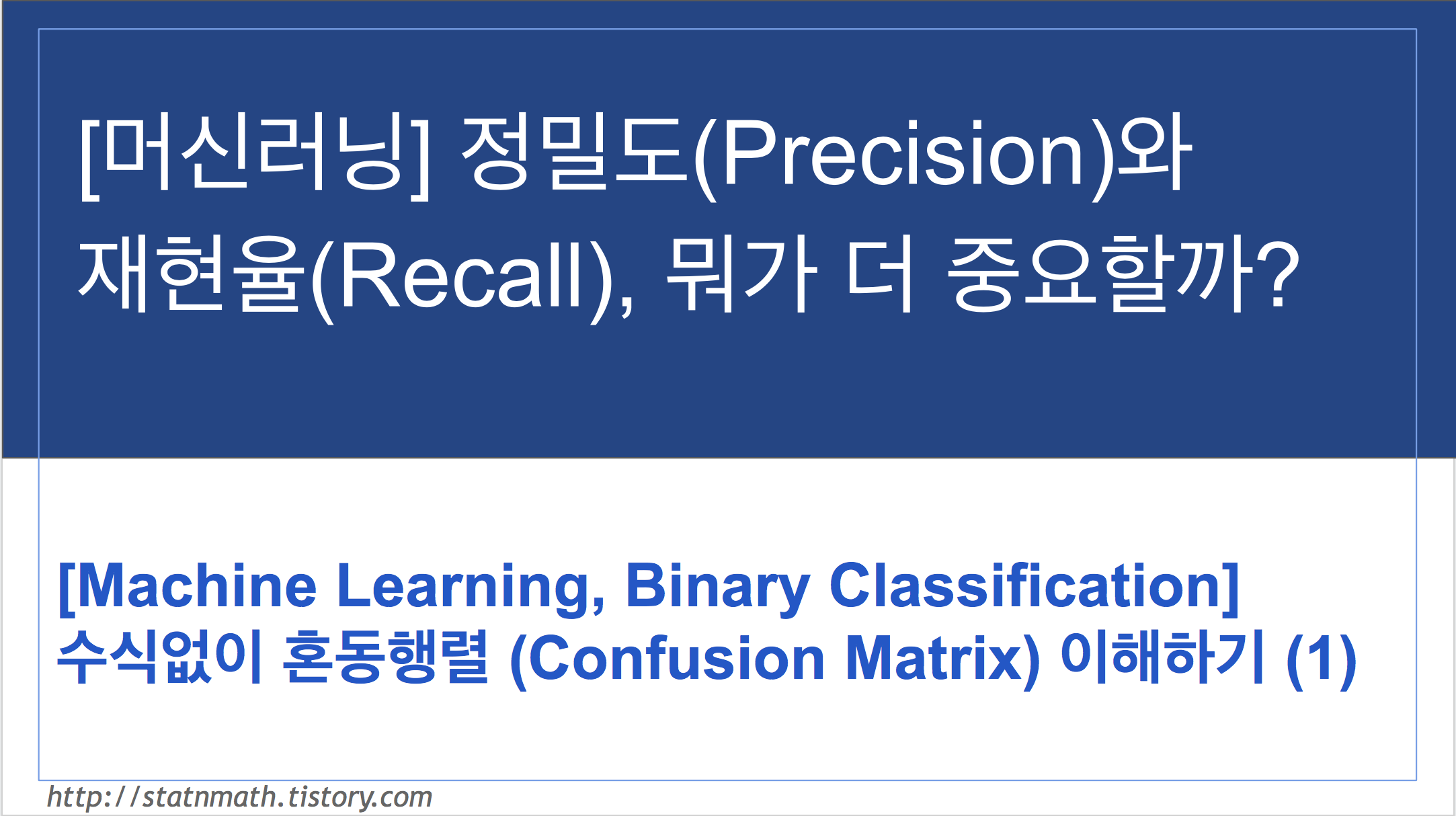 머신러닝 (기계학습)에서 정밀도! 재현율! 단어만 봐도 아!!! 이건 분류모델에서 나오는 예측한 결과값을 평가하는데 나오는 값들이구나!!라고 바로 생각이 나셔야합니다.