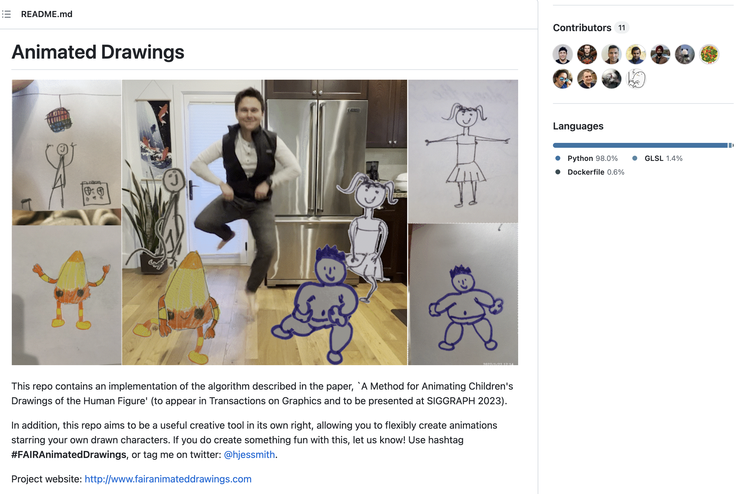 GitHub - facebookresearch/AnimatedDrawings: Code to accompany "A Method for Animating Children's Drawings of the Human Figure"