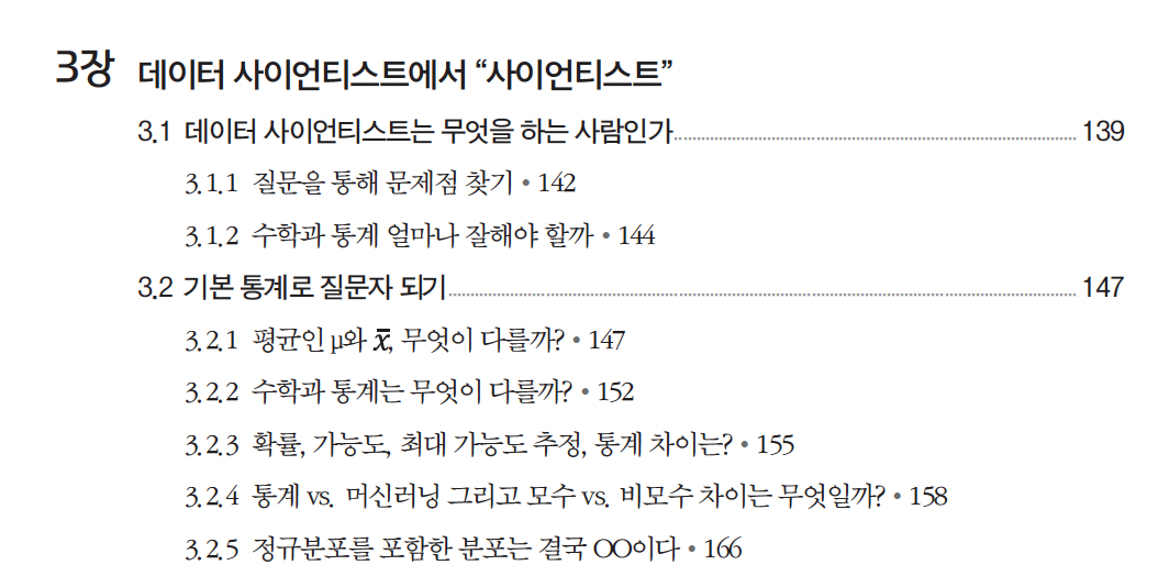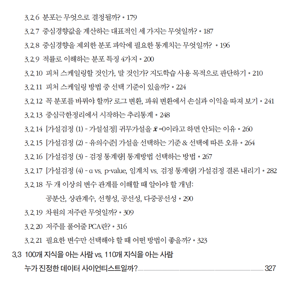 목차 중 일부를 보면, 이렇게 질문하는 경우가 많았고요. 책 전반에 걸쳐서 상황을 제시하기도 했습니다. 상황을 제시하고, 질문을 던진다면 책을 읽는 과정에서 데이터 사이언티스트의 기본 자질인 <질문자>가 되지 않을까? 질문을 던지면 비로소 보이는 것들이 있고, 질문에 대한 답을 찾는거에 집중하다보면 내가 무엇이 부족한지, 내가 어디를 공부해야하는지를 보이거든요.